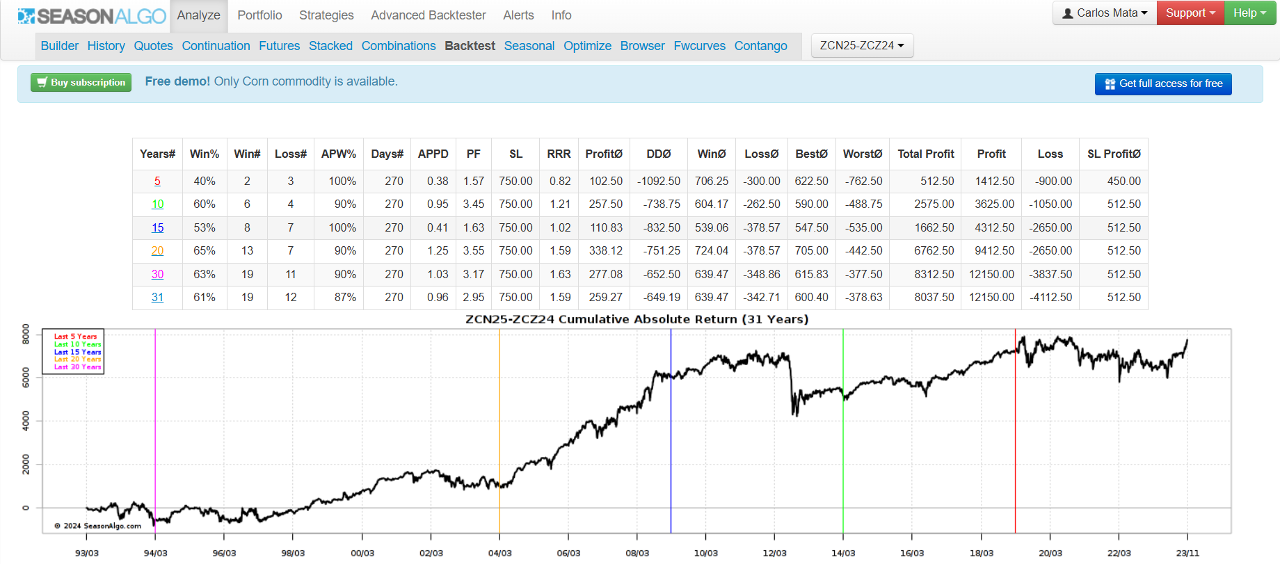 Let’s pick Corn as an example, so that you can cross check against SeasonAlgo (Analytics for Corn is available in the free subscription tier).